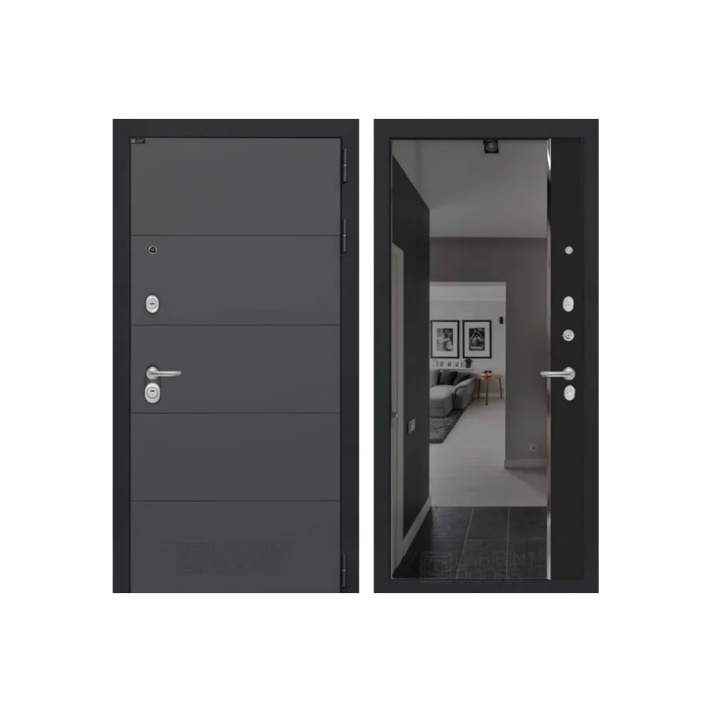 Входная дверь ART с зеркалом Панорама с тонировкой - Черный кварц